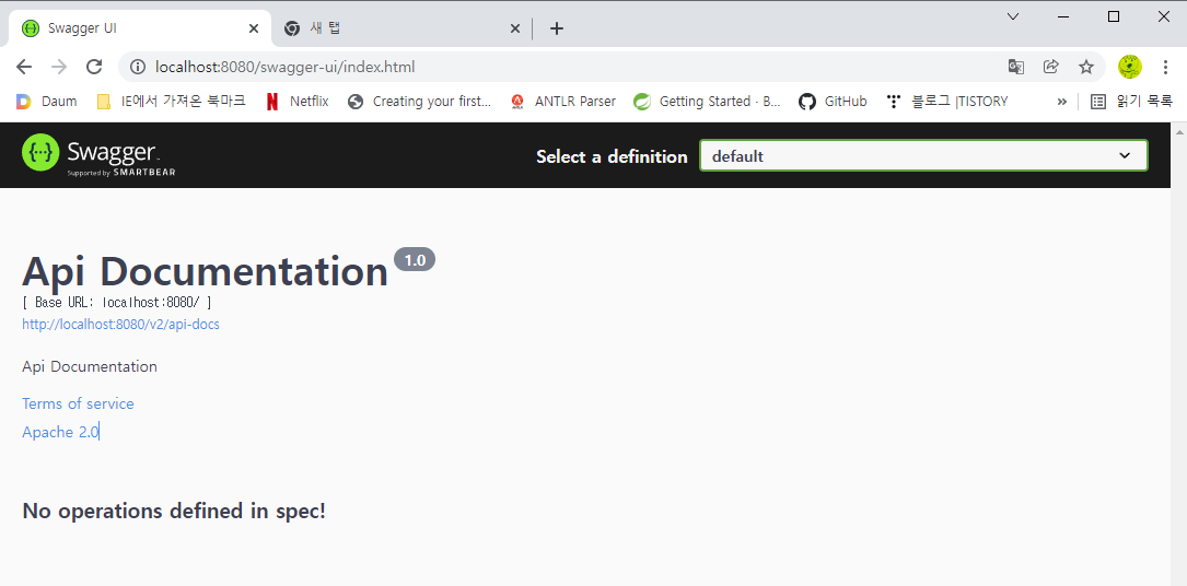 예전에는 localhost:8080/swagger-ui.html 주소로 하면 swagger 화면이 보였는데...