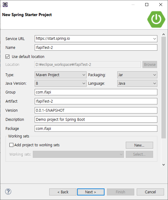 그럼 다시 프로젝트를 생성하여 테스트 시작 합니다.