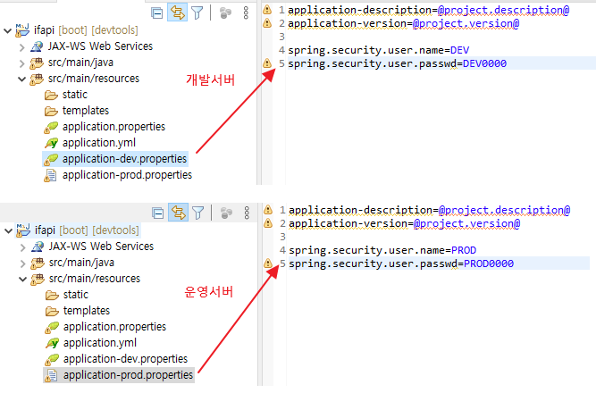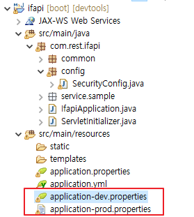 우선 첫번째로 application.properties 파일을 아래와 같이 분리를 합니다.