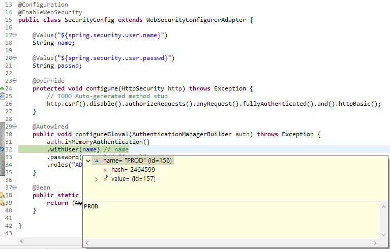 운영으로 실행하였을때 디버깅하여 value값 확인