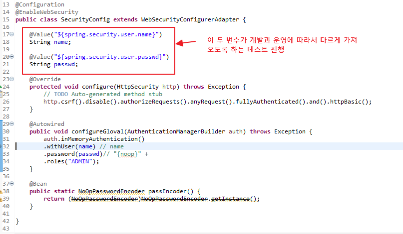 아래 두개의 변수를 개발과 운영에서 다르게 값을 가져오면 분리작업이 정상적으로 가능하다고 확인됩니다.