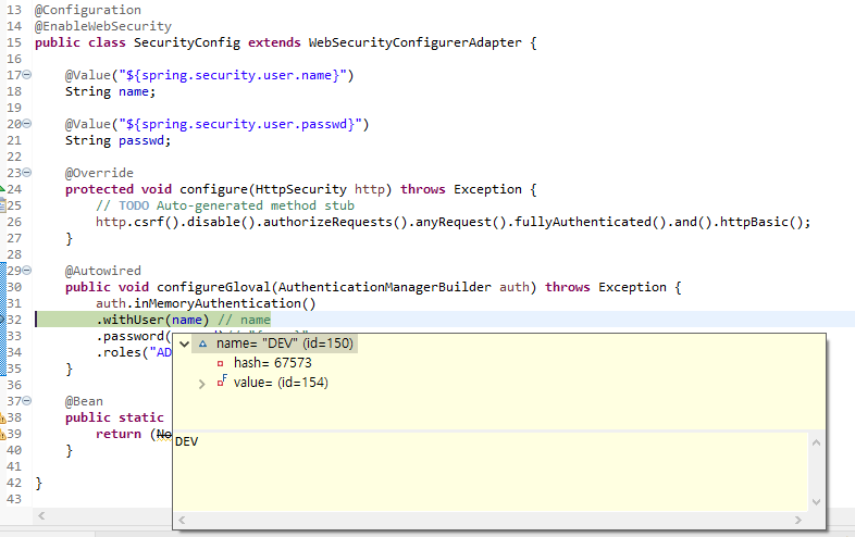 개발로 실행하였을때의 디버깅하여 value값 확인