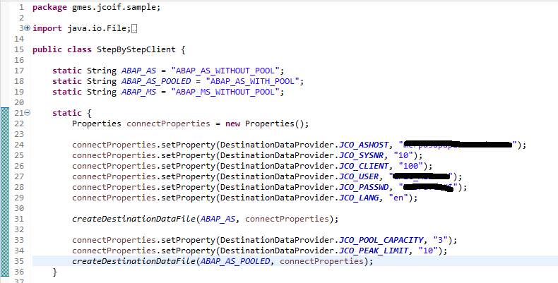 JCoDestination destination = JCoDestinationManager.getDestination(ABAP_AS_POOLED);
