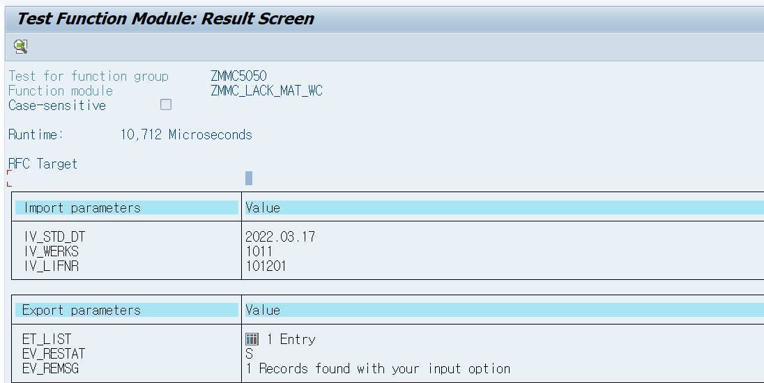 우선 테스트 할 수 있는 샘플 SAP 펑션이 있어야 합니다. 그래서 SAP 확인을 먼저 합니다.