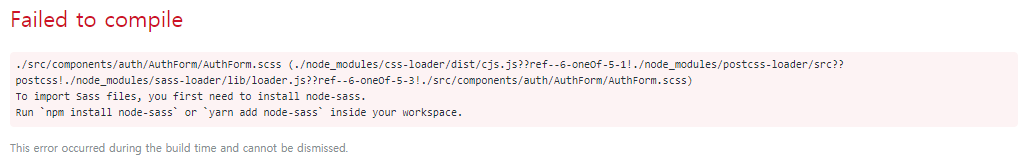 | npm install node-sass // 이렇게 실행을 해서 문제를 처리함. |