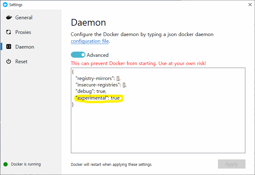 I had this same issue on Windows 10. I bypassed it by running the Docker daemon in experimental mode: