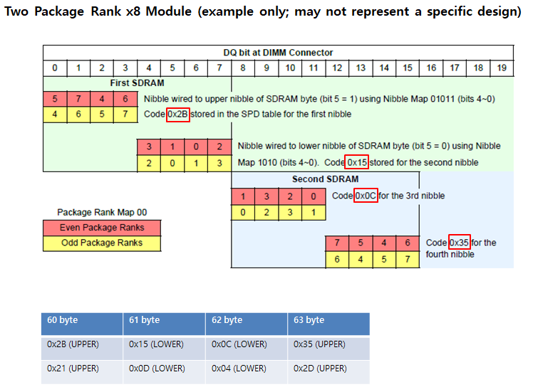 DDR4의 ConnectConnector to SDRAM Bit Mapping 관련 부분은 이해하는데 한달 이상 걸렸던것 같음. 좀더 쉽게 설명을 하기 위해서 SPD DDR4에서 60~77 BYTE 영역에 대하여 알아보자. 그런제 DQ ,CE 정도의 용어는 알고 있어야 함.