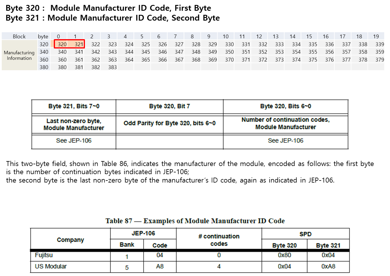 JEP106BA_Standard Manufacturer Identification Code 문서를 확인하여 제조회사의 코드를 확인 해야함.