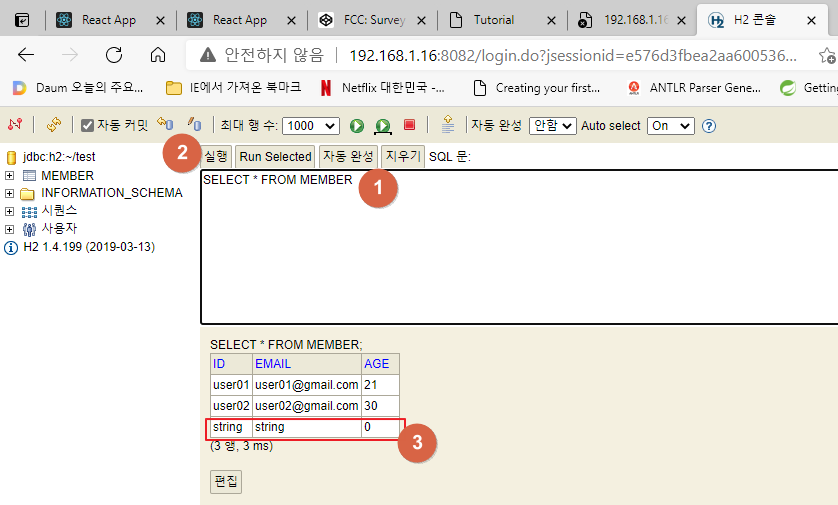이제 실제 등록 테스트를 하고 h2 db에서 조회하여 데이터가 등록이 되었는지 확인 테스트