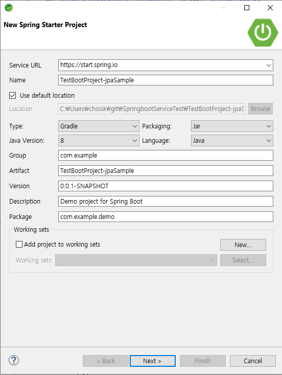 이전에 올린 환경설정에서 JPA를 연동하여 데이터베이스 연동 서비스를 추가하는 샘플 프로젝트를 연습니다.