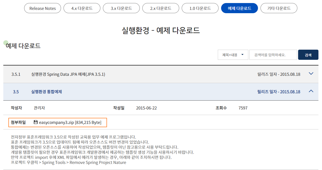 실행환경 - 예제 다운로드 | 표준프레임워크 포털 eGovFrame