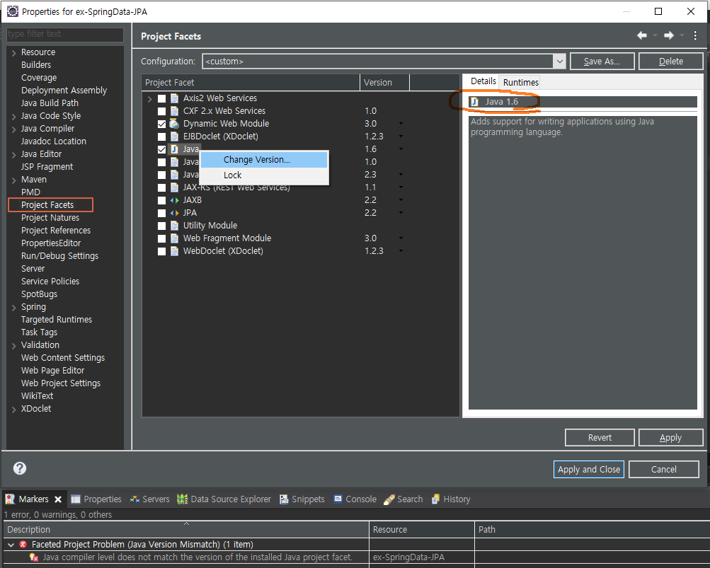 Description Resource Path Location TypeJava compiler level does not match the version of the installed Java project facet.
