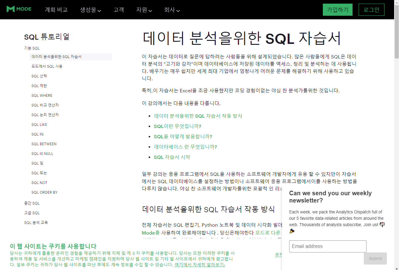 그중에 The SQL Tutorial for Data Analysis 사이트의 교육 내용이 좋네요. 가입을 하고 실습을 해보니 정말 편합니다.