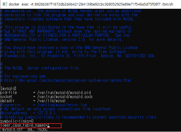 아래 한줄 추가하고 mysql다시 재기동합니다.