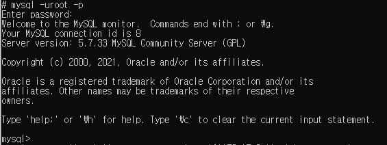 mysql -uroot -p