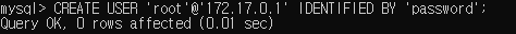CREATE USER 'root'@'172.17.0.1' IDENTIFIED BY 'password';