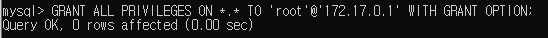 GRANT ALL PRIVILEGES ON *.* TO 'root'@'172.17.0.1' WITH GRANT OPTION;