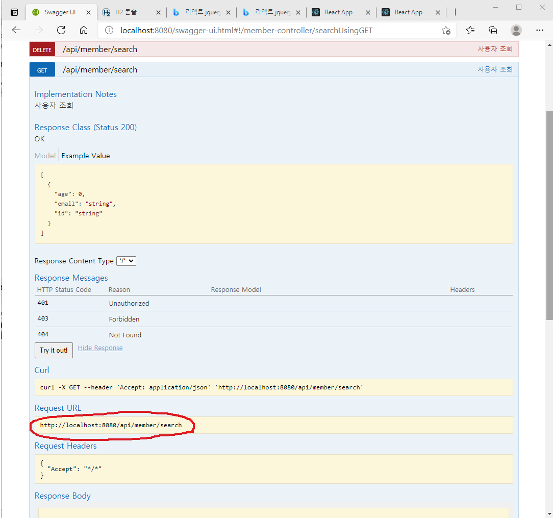 그리고 서비스만 잘 가져오는 부분만 이해하면 응용하는 것은 금방 가능함. axios.get 하여 데이터 가져 오는것으로 간단하게 할 수 있네요. 음... 그런데... 아직 member/search 서비스를 직접 호출하는 부분에서 접근이 잘 안되고 있음.