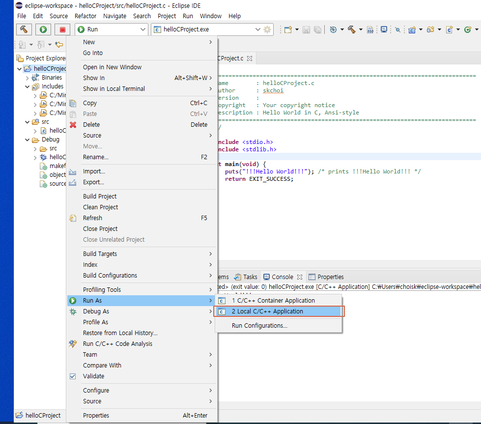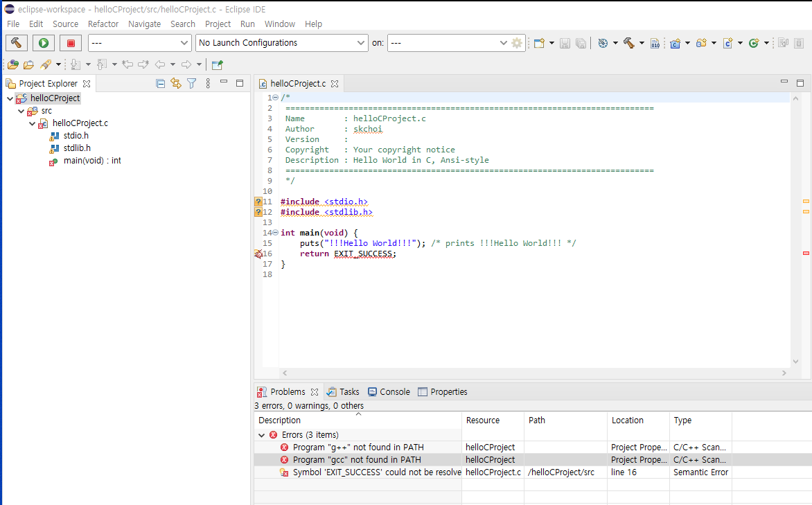 2. 이클립스 설치를 하고 C 프로젝트를 시작합니다.
