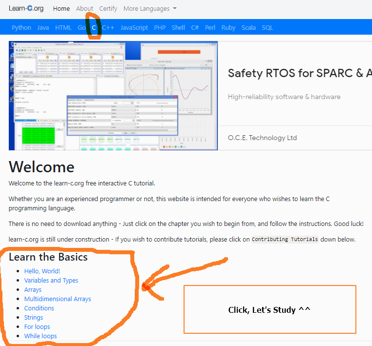 Welcome Welcome to the learn-c.org free interactive C tutorial. Whether you are an experienced programmer or not, this website is intended for everyone who wishes to learn the C programming language. There is no need to download anything - Just click on th