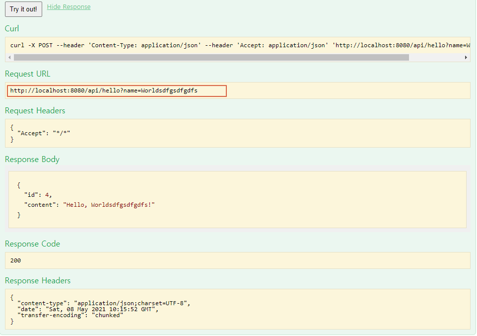 String msgMap = sendREST("http://localhost:8080/api/hello", json);