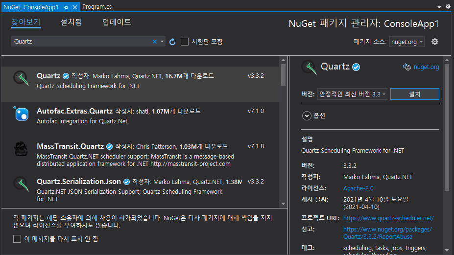 주로 java 에서 스케쥴러를 사용하였는데 이제 c#에서도 스케쥴러를 이용하여 작업이 필요하여 테스트를 해봅니다.